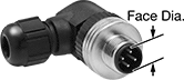 A- and C-coded connectors send both power and signal, while K-, L-, S-, and T-coded connectors only send power. Choose A-coded connectors for AC and DC sensors, actuators, motors, light curtains, and other devices. They’re often used to connect equipment to IO Link controllers and within Profibus, DeviceNet, and other fieldbus systems. 90° elbow connectors run your cord along the side of equipment, so they fit behind machines and in tight spaces.