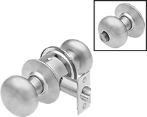 In addition to lasting twice as long as standard key- and button-locking door knobs, these are made entirely of corrosion-resistant materials to stand up to washdown and marine environments. They are UL Listed for three-hour fire doors. Choose them if you need knobs that each open with a different key. Once the outside knob is locked with the button on the inside knob, turn the inside knob to release the lock or unlock it with a key from the outside. These are also known as entrance knobs.