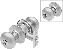 In addition to lasting twice as long as standard key-locking door knobs, these are made entirely of corrosion-resistant materials to stand up to washdown and marine environments. They are UL Listed for three-hour fire doors. Choose them if you need knobs that each open with a different key. The outside knob locks and unlocks with a key while the inside knob can always open the door. These are also known as classroom knobs.