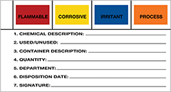 Mark hazardous materials and write in information to ensure they are stored and handled properly.