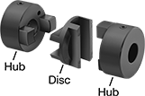 A complete coupling consists of two hubs and one disc (each component sold separately).