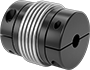 With a bellows between two hubs, these couplings handle all types of misalignment and are good for precision stepper and encoder motion-control applications. All have lightweight aluminum hubs and a stainless steel bellows for corrosion resistance. Couplings allow zero backlash (no play) and grip evenly around your shaft for a strong hold without marring the shaft. Tighten the clamping screws to secure.
