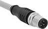 The threaded end of these M8 connectors keeps contaminants out and withstands vibration better than RJ45 ends on traditional Ethernet cords. They are often used with sensors, switches, and I/O modules. To protect against signal interference, these connectors are shielded. Connectors are Power over Ethernet (POE) enabled to carry data and power within one connector.