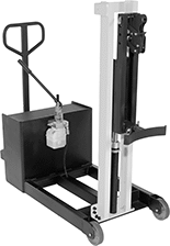 With the push of a button, the electric hydraulic lift raises the drum and a chute controls the flow of the material being dispensed to prevent splashes and spills. A clamp on each side of the chute secures the drum. Handlers have a handheld pendant switch and operate only when the push-buttons are engaged. A limit switch turns off the motor when the drum reaches the maximum height. Load will not drop in the event of a power failure. Screw-down floor locks keep handlers stationary during operation.