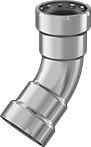 Press these fittings onto stainless steel pipe using a crimping tool for a permanent, leak-tight connection that's faster than threading or welding and doesn't require heat. Fittings have an internal stainless steel gripping ring and rubber O-ring that create a seal when crimped. They are designed to leak if fittings have not been crimped; a colored dot marks the leak path so it's easy to spot unsealed connections. All of these fittings are made of 304 stainless steel to resist corrosion from frequent exposure to water and fuels. They’re often used for water processing lines, heating and cooling systems, and fuel lines. They are comparable to Viega MegaPress fittings.
