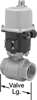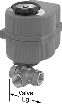 Pipe Size | Gender | Thread Type | Port Type | Flow Coefficient (Cv) | Max. Pressure | Max. Steam Pressure | Pressure Drop | Actuation Time, sec. | Temp. Range, °F | Valve Lg. | Lg. | Ht. | Each | |