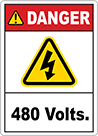 480 Volts (English)—Reflective Yellow with Black Message | |||||||