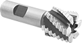 Serrations along the cutting edge act as chip breakers, so these end mills can remove large amounts of material at high speeds. With better heat and wear resistance than high-speed steel, these cobalt steel end mills can run at higher speeds and provide better performance on hard material, such as iron, hardened steel, titanium, and tool steel. Their square end makes them good for milling square slots and edges. All are noncenter-cutting for operations where the peripheral teeth do most of the work, such as shoulder milling, contouring, and finishing. They cannot be used for plunge cuts.