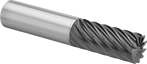 Variable spacing between the flutes reduces vibration, allowing these end mills to provide fast cuts, smooth finishes, and long tool life on hard materials. Made of solid carbide, these end mills are harder, stronger, and more wear resistant than high-speed steel and cobalt steel for the longest life and best finish on hard material. Their extreme hardness means they are brittle, so a highly rigid setup, such as a CNC machine, is necessary to prevent the end mill from breaking. They have a square end for milling square-bottomed slots, pockets, and edges.