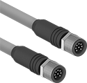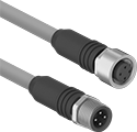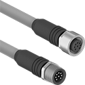 Thanks to its threads and IP rating, the M12 end is water and dust tight when mated. Poles and keyways on its face adhere to standard coding layouts, which reduces the chance of mismatching connections.