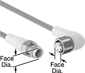 Cords with a 90° elbow run along the side of equipment, so they fit behind machines and in tight spaces.