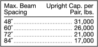 Upright Weight Capacity per Pair @ Maximum Beam Spacing