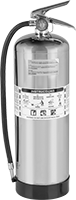 Douse fires from combustibles such as wood, paper, cloth, and rubber. Extinguisher comes empty. Fill it with water and pressurize using a compressed air or nitrogen source with a 100 psi capacity. It has a 5/16"-32 UNEF male Schrader fitting for pressurizing and a pressure gauge. Extinguisher has a safety pin to prevent accidental discharge. Please check local ordinances for inspection requirements (inspection tags sold separately).