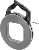 Thicker than standard fish tape, this fiberglass tape remains stiff along its entire length for long runs of conduit and raceway. It’s nonconductive, so it’s safer to use around energized equipment than metal fish tape. Attach your wire to the tape and fish it through. Round and flexible, this tape handles making multiple bends in different directions. It’s also known as conduit rodder.