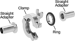 Note: To complete a connection, you’ll need two quick-clamp fittings, a ring, and a clamp (all sold separately).