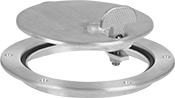 For Cutout Dia. | O'all Dia. | Panel Thick. | Frame Thick. | Seal Material | Color | Cap., lbs. | Temp. Range, °F | Latch Type | Opens With | Fasteners Included | Hole Dia. | Each | |