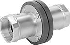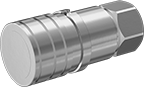 To minimize fluid loss when connecting and disconnecting your line, these couplings have flat faces for a close fit and shut-off valves to stop the flow—they meet ISO 16028, which is an international standard for hose couplings. They’re also known as flush-face and double shut-off couplings. A complete coupling consists of a plug and socket (both sold separately). They connect and disconnect quickly, so use them if you need to access a line frequently. Made of 316 stainless steel, they have excellent corrosion resistance and withstand a variety of chemicals.