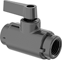 The most chemical-resistant threaded valves we offer, these have a PTFE seal and an alloy body that can withstand extremely aggressive and corrosive chemicals, such as methyl ethyl ketone and toluene. They are standard port, so they slightly restrict flow.