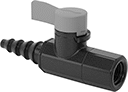 Lever handles show the valve’s position.Valves with tapered barbs can be used with multiple tube sizes.
