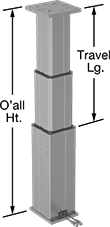 | Lg., mm | Wd., mm | Ht. When Retracted, mm | Ht. When Extended, mm | Travel Lg., mm | Position Accuracy, mm | Dynamic | Static | Mount. Hole Dia. (No. of Holes) | Mount. Fasteners Included | Mount. Hole Dia. (No. of Holes) | Mount. Fasteners Included | Includes | Each | |