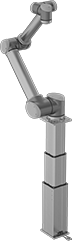 Take your Universal Robots arm to new heights—these bases move up and down to extend your robot’s vertical reach for high and low stacking jobs. Often used for loading boxes off a conveyor, they start at ground level and reach higher as they need to stack boxes on top of each other. The bases have a mounting plate, base controller, and software plug-in for connecting, operating, and programming your arm. They become an extension of the arm, so you can program how they move as part of the robot's work cycle. Use the threaded holes on the bases and mounting plate to attach accessories, such as a cable management system.