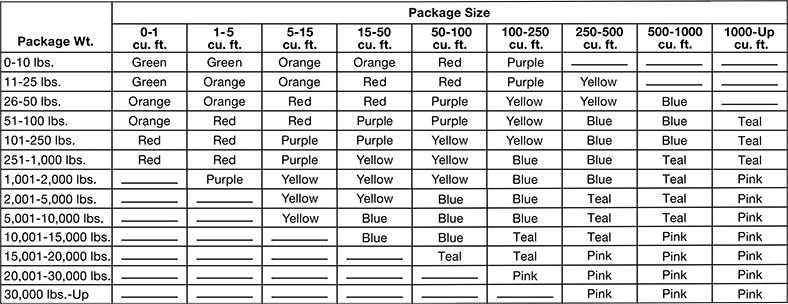 Liquid-filled glass vial indicators turn a bright color when subjected to shock. The vial is protected by a plastic cover. Use the table to determine the proper label for your package.
