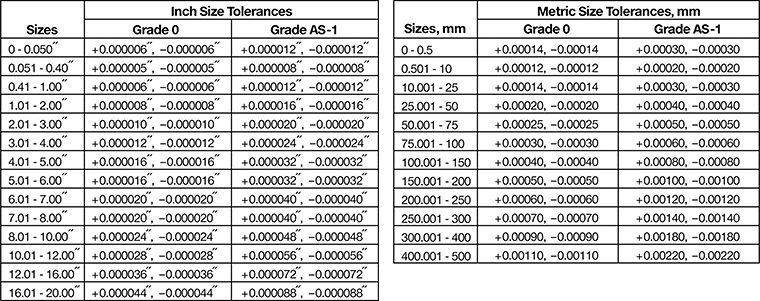 Each block has a grade per ASME B89.1.9. Grades are based on tolerance—the smaller the tolerance, the greater the accuracy.