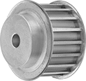 Made of aluminum, these pulleys have good corrosion resistance. The teeth match up with the grooves along the inside diameter of a timing belt in order to move components forward or backward. Select a pulley with a maximum belt width that’s the same or larger than your timing belt width. Pulleys without a shaft diameter have a pilot bore, so you can customize them to your needs.