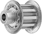 Made of aluminum, these pulleys have good corrosion resistance. The teeth match up with the grooves along the inside diameter of a timing belt in order to move components forward or backward. Select a pulley with a maximum belt width that’s the same or larger than your timing belt width. Choose pulleys that have a diameter to match your shaft.
