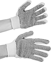 Gloves with rubber dots on the palm have a strong grip. Those with mesh backing also ventilate your hand when you work.