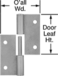 Ht. | Wd. | Ht. | Wd. | O'all Wd. | Leaf Thick. | Range of Motion | Capacity, lbs. | Pin Dia. | Material | Pin Material | Each | ||