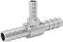 Made of stainless steel, these fittings stand up to a wide variety of chemicals, as well as fuels, gasoline, and oils. To connect, slide the barbed end into plastic or rubber hose and secure with a clamp.