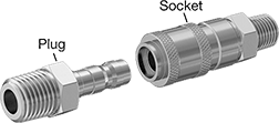 Steel is stronger and more durable than other metals. Zinc-plated steel has fair corrosion resistance and should be used primarily in dry environments. Brass is softer than other metals, so it’s easier to thread together. It has good corrosion resistance. Note: To ensure a correct fit, make sure that the plug and socket have the same coupling size.
