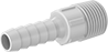 Made of plastic, these fittings are lighter in weight than metal barbed fittings, yet have the chemical and corrosion resistance to stand up to harsh substances. Slide the barbed end into plastic or rubber hose and secure with a clamp. Also known as hose nipples, they adapt a barbed end to a threaded end.