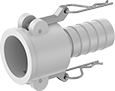 Sockets with barbed end are also known as C couplers. Insert the barbed end into rubber hose and secure with a clamp.