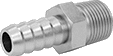 Plugs with barbed end are also known as E adapters. Insert the barbed end into rubber hose and secure with a clamp.
