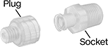 Note: To ensure a correct fit, make sure that the plug and socket have the same coupling size.