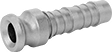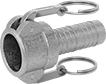 Sockets with barbed end are also known as C couplers. Insert the barbed end into plastic or rubber hose and secure with a clamp.