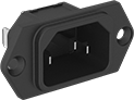 Send power to your device using the inlet, then route power to another device through the outlet—all with standard IEC power cords. Compared to using separate receptacles, these combination connectors are quicker to install and have a more streamlined appearance. Snap the connector into your panel—tabs on the side hold them in place without needing fasteners. Then solder your power supply to the wire terminals for a secure, permanent bond. C13 receptacles are also known as Sheet F outlets.