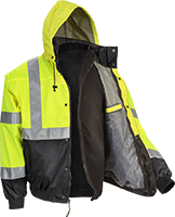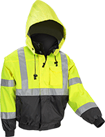 Bright colors and reflective stripes make workers stand out in high-risk areas and where low-visibility is a concern. Black fabric on the lower half keeps jackets looking cleaner longer than all-yellow jackets. These jackets meet Class 3 ANSI/ISEA 107 standards for workers that need to be seen by traffic at a minimum distance of 1/4 of a mile. They have a zipper down the front.
