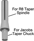 Use with R8 taper spindles which are most often found on manual milling machines. The R8 taper end fits into a machine spindle and the Jacobs taper end is compatible with a Jacobs taper drill chuck. All arbors are made of hardened, precision-ground steel.