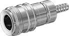 A complete coupling consists of a plug and a socket (both sold separately) that connect and disconnect quickly. Use them if you need frequent access to a line. All Japanese plugs are compatible with any of the Japanese sockets, regardless of the pipe size or barbed hose ID. Plugs and sockets are zinc-plated steel, which is strong and durable. They have fair corrosion resistance, so they should be used primarily in dry environments.