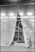 A polyester string reinforcement gives this material better tear resistance than standard LDPE film. It is often used as window coverings, construction film, and vapor barriers.
