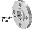 Butt-weld flanges are also known as weld-neck flanges; the flange neck has a beveled end that, when flush to pipe, creates a trough for a strong weld. Socket-connect flanges have an internal stop that supports the pipe when welding and prevents the pipe from sliding all the way through. Slip-on weld flanges have no internal stop; slide a pipe through the flange and weld on both sides. Stub-end flanges are also known as lap-joint flanges; use them with a stub-end straight adapter (not included). The stub-end straight adapter slides into the flange and welds to pipe (not the flange). Since the flange isn’t welded to the pipe, it can be disconnected easily for frequent cleaning and inspecting. Reducing flanges let you transition your piping system to a smaller pipe size; attach to a flange with a larger pipe size but with the same flange dimensions. Cap flanges are also known as blind flanges.