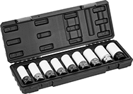 9 | 9 Sockets | Deep Sockets (Inch): 3/4", 13/16", 7/8", 15/16", 1", 1 1/16" Deep Sockets (Metric): 17 mm, 19 mm, 21 mm | Plastic | Plastic | Plastic Case | 00000000 | 0000000 |