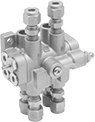 A sealed design prevents contamination in dirty and dusty environments. Use these manifolds to serve multiple lubrication points from a single location. Adjust the flow to individual lubrication points by turning the dial on the corresponding valve. Each valve can be removed for cleaning without disturbing the rest of the system. They can be used with any oil grade. Flow rate depends on temperature. They have NPTF (Dryseal) threads, which are compatible with NPT threads.