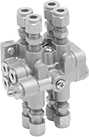 Use these valves with manual and electric pumps to dispense different amounts of oil from multiple lubrication points. They have a check valve to prevent backward flow. To connect to tubing, use a compression nut and sleeve (sold separately).