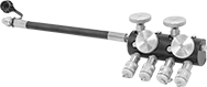 Connect up to four rams and a gauge to a pump. Ram connections have flow-adjustment valves that control the flow of oil to adjust ram speed or shut it off to temporarily hold a load. Combine two or more manifolds for larger systems.