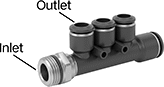 Number of Inlets | For Tube OD (Inlet) | Pipe Size (Inlet) | Number of Outlets | For Tube OD (Outlet) | Pipe Connection Material | Tube Connection Material | Gasket Material | Color | Material | Color | Maximum Pressure | Each | |