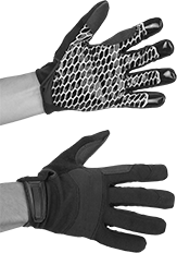 Gloves with a Teflon® palm coating are treated to withstand oil and water. Gloves with a silicone rubber grip on the palms and fingers are tacky—use them for jobs where you need a strong grip. For better traction in dry, oily, and wet conditions, use gloves with a Kevlar/Dyneema grip.
